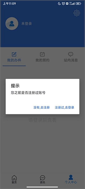 3、若出现提示,选择前往注册。