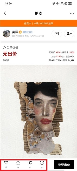 4、若你心仪这款藏品,点击“我要出价”选项,设置价格就行。