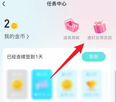 2、找到右上角处的【邀好友得奖励】,点击它。