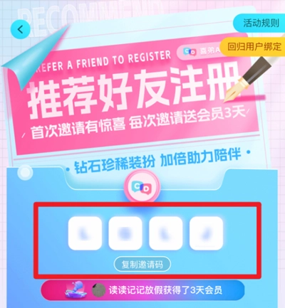 3、在喜弟里, 红色方框所圈位置,即可查看到自己的邀请码。