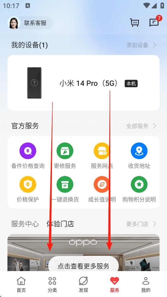 1. 轻点右下方的“服务”选项。