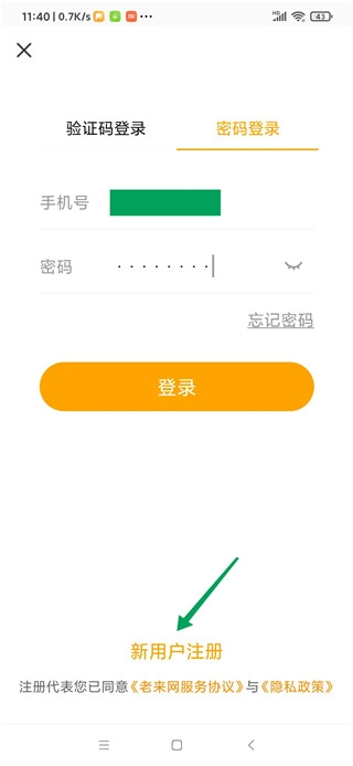 2、若尚未注册,点击『新用户注册』。填入手机号、验证码,并设置密码。务必牢记密码!!!