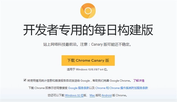 金丝雀版与开发者版的目标一致,主要是为了让网站开发人员能提前完成适配工作。