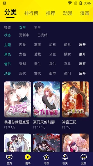 3、其中的分类丰富多样,总裁类、古代类、穿越类等一应俱全,任您随意挑选。