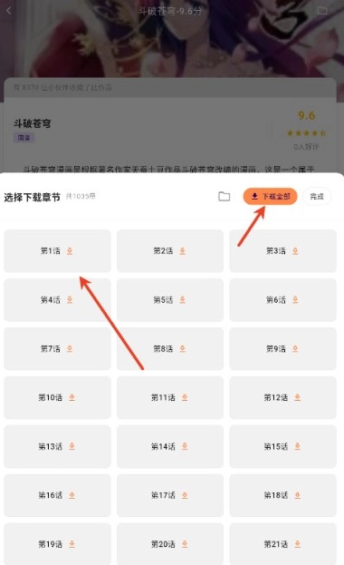 2、若要阅读特定章节,点击相应章节便会开始阅读;若想阅读全部章节,点击左上角的“全部”选项,随后等待加载完成即可。