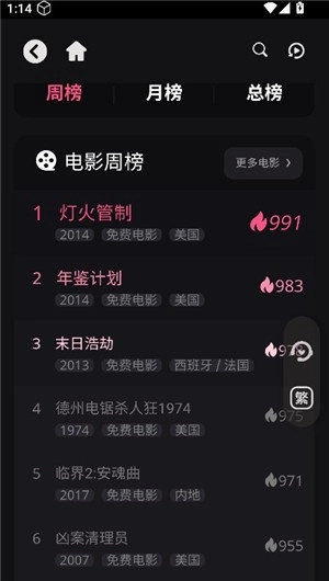 2、您能够点击“榜单”,在此处查询近一周或一个月的热播恐怖片。