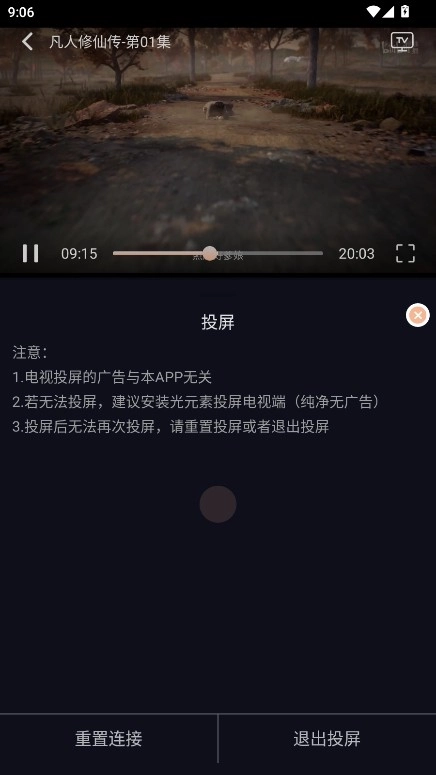 5.投屏成功后,随后影视剧的画面就会投屏到电视屏幕上