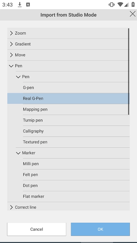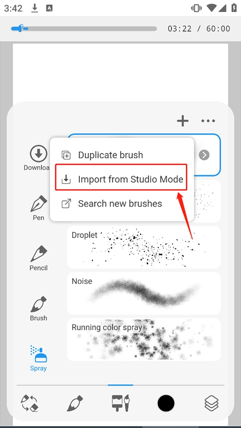 5、最后于工作室模式目录里找到存放你笔刷的文件夹,接着点击“ok”,就能完成导入。