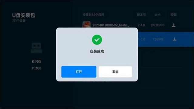 3、把U盘插到电视或者电视盒子上,然后选择【电视管家】。