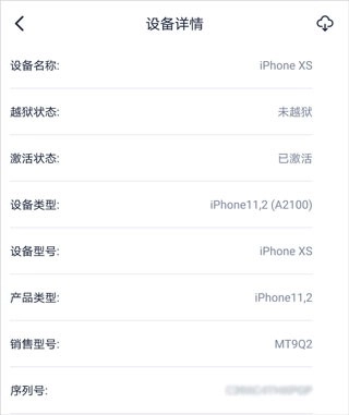 此刻,您能够点击下方的“查看设备详情”,来查看iPhone的详细信息,其中涵盖越狱状态、序列号、ECID、生产日期、电池寿命、固件版本等具体内容。