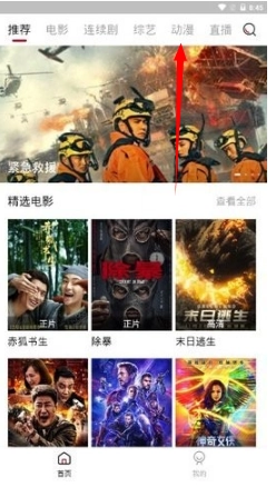 1. 进入软件首页,点击页面上方的动漫导航栏。