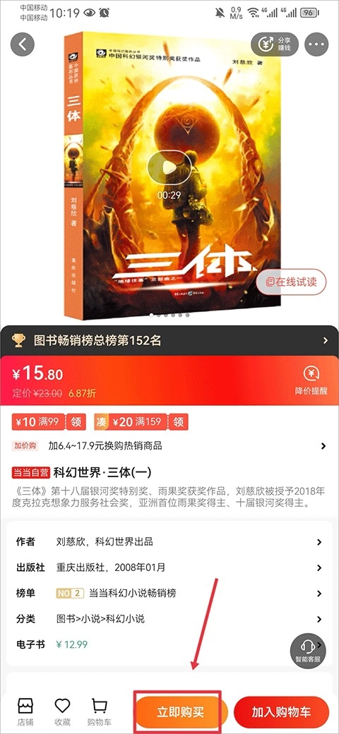 4、进入书籍详情页后,点击页面底部的【购买】按钮。