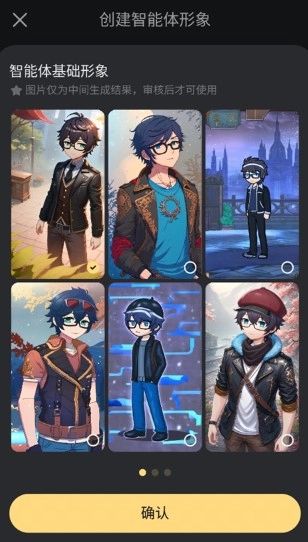 6、从智能体的基础形象里挑选一张,然后点击“确定”。