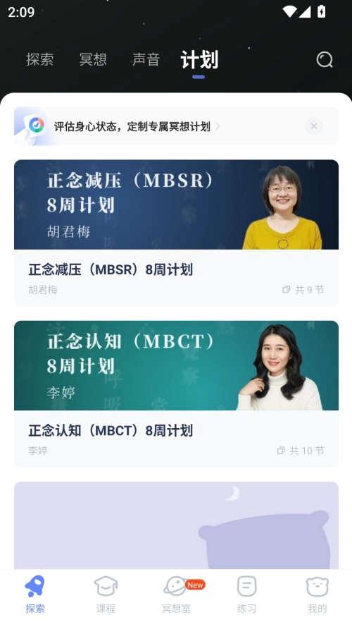 3、软件里面包含了多种有关睡眠冥想的模式,大家都可以试一试,找到最适合自己的方式,以此来解决自己的睡眠问题。