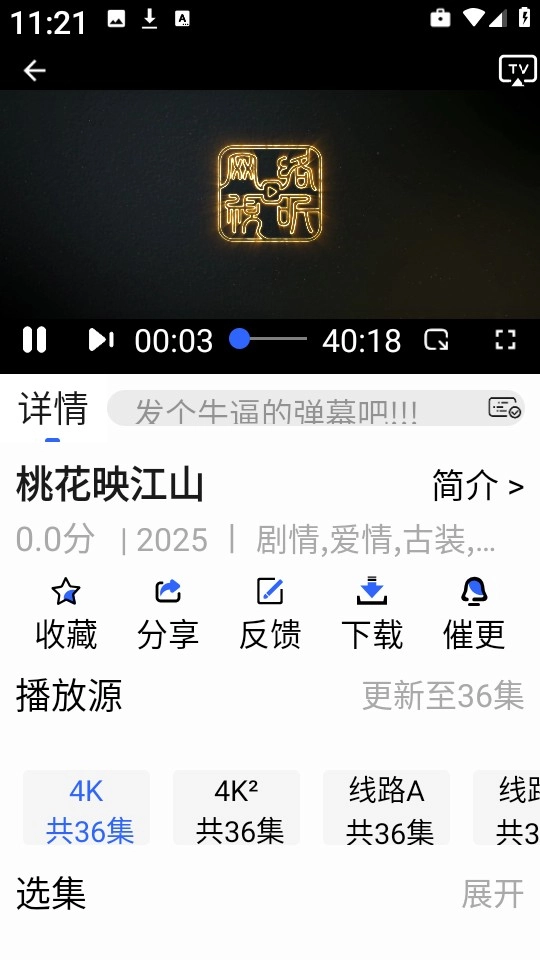 2、接下来随意播放一部喜爱的剧集内容,在此小编以“桃花映江山”为例。