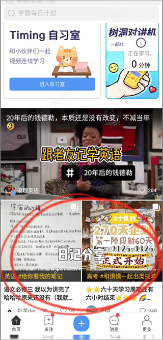 8、而且在timing软件中还支持自由发布自己的学习日记及视频分享内容;