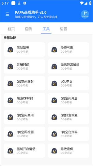1、这是一款游戏画质助手工具,若要使用,可在本站安装PAPA 。