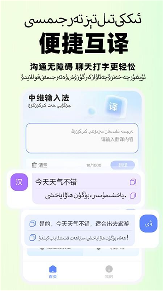 4.这款App具备文本翻译功能,用户输入文本后,点击翻译按钮,即可实现维吾尔语与汉语的快速互译。