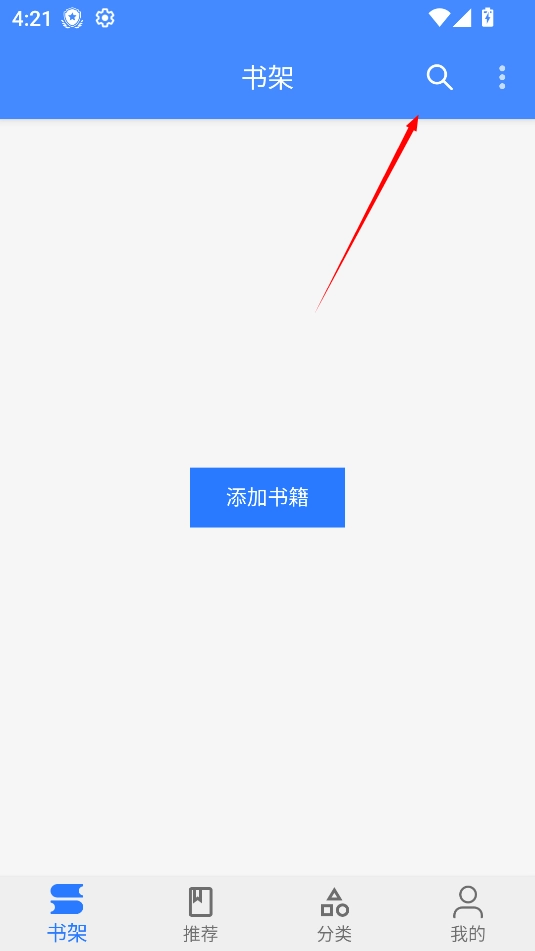 1. 点击位于最上方的放大镜图标,然后输入想要搜索的书籍名称。