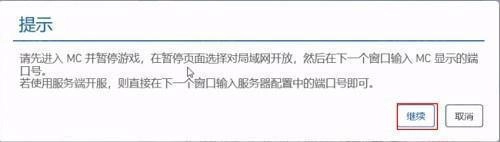 8、之后点击继续,然后将记下的游戏端口号输入进去。