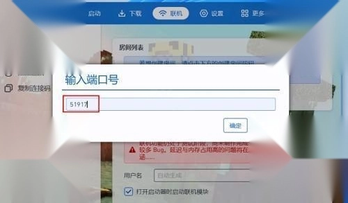 3、填入端口号就能创建好联机房间,之后设置一个房间名