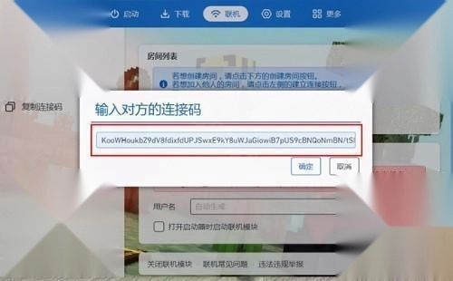2、将收到的连接码复制粘贴进去,点击确定