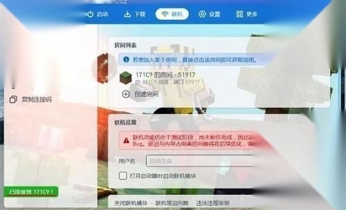 1、打开PCL2启动器,点击顶部的联机项目,再点击右侧的【创建房间】
