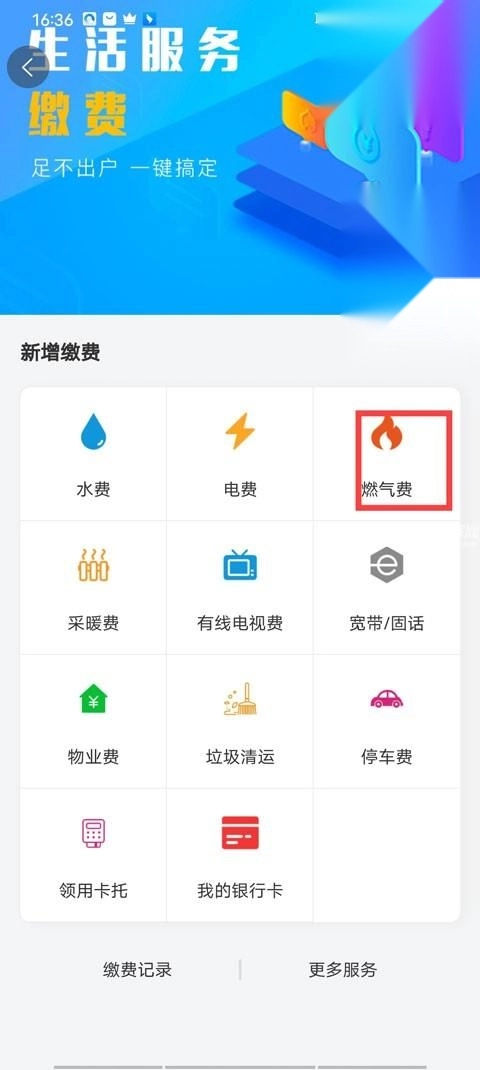 2、点击燃气费;