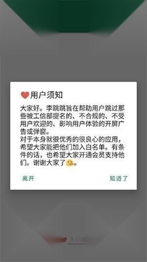 1. 李跳跳,当你进入软件时,会看到相关的用户须知。