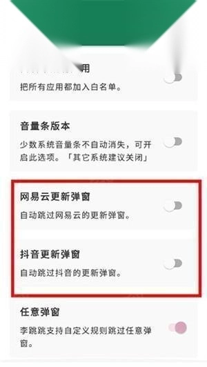 5、该软件同样能够实现网易云音乐、抖音更新弹窗的自动跳过。