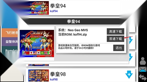 1、安装kawaks模拟器,运行后如下图所示,包含了对打格斗、动作过关、飞行射击、益智休闲等;