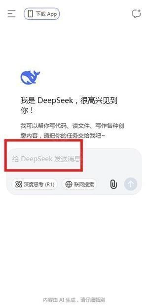 2. 进入首页之后,点击向deepseek发送消息。