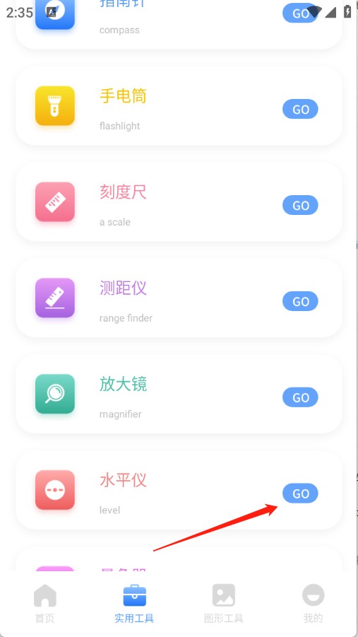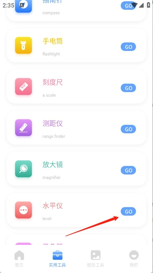 3. 直接点击打开自己所需的工具,这里小编以“水平仪”作为示例。