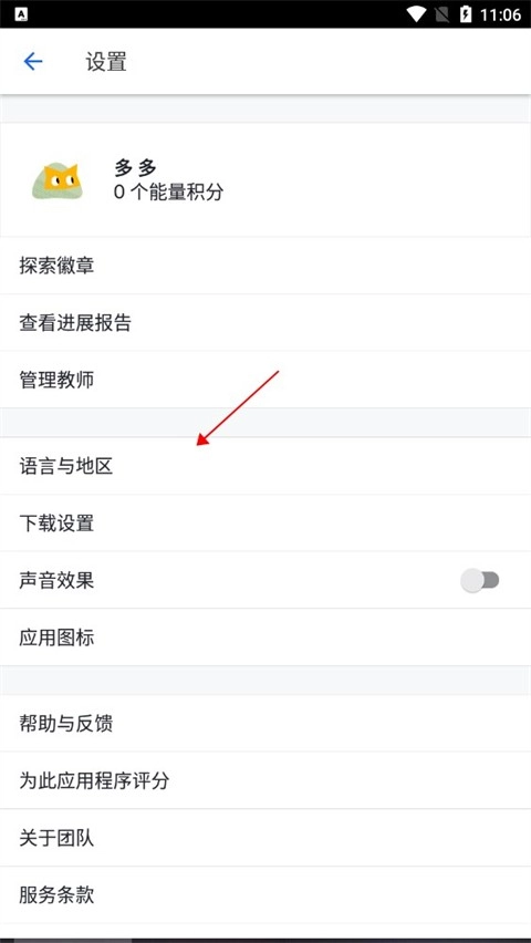2. 在设置界面,用户点击【语言与地区】选项。