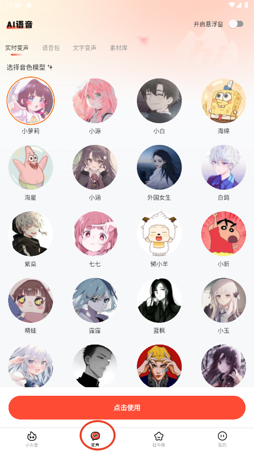 1打开悬浮窗口,在语音通信时,可实时选择不同音调进行更改。