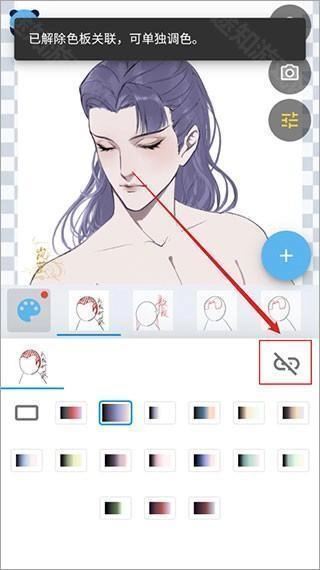 要是您只想对这个部位进行单独调色,不想让其他部位跟着变色,那么在调色时,先点击调色盘右上角的链接标识。当链接标识呈现断开状态,您就能够对该部位单独调色。此时选择变更颜色,原本会一同变化的部位也会维持原状。