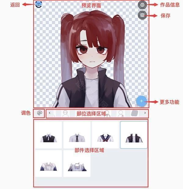 在捏捏界面下方的“部件选择区域”,挑选您想在该部位换上的部件,预览界面会同步换上所选部件。