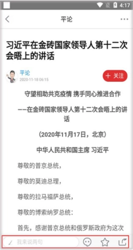 2、在此处能够对自己喜爱的新闻进行评论、收藏以及转发。