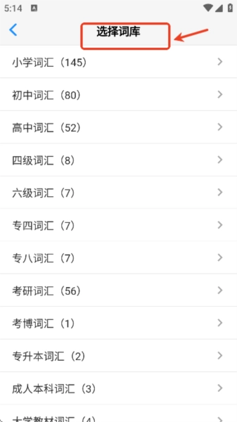接着挑选自己想要背诵的单词库,其中包含专四、专八等词库。