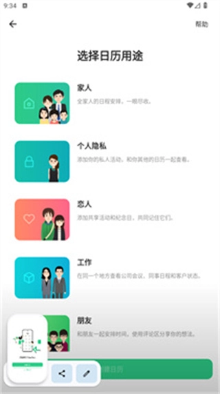 能够分别创建适用于家庭之间、情侣之间、同事之间以及群组之间共享的日历。