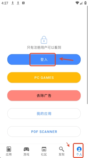 2. 打开并进入软件,点击登录选项完成登录操作。