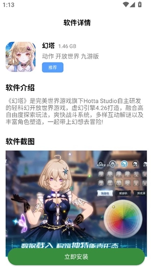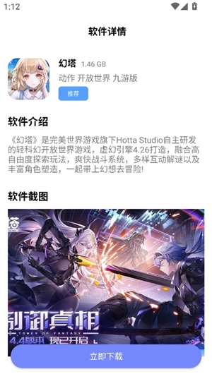 3、举个例子,若我们选择《幻塔》这款游戏,进入其游戏详情页面后,点击“立即”。