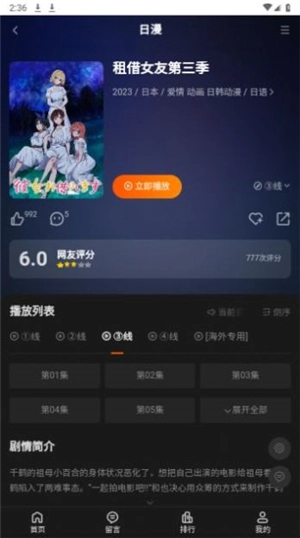 4、点击任一作品,例如《租借女友第三季》,进入详情页面后,选择相应分集就能观看。