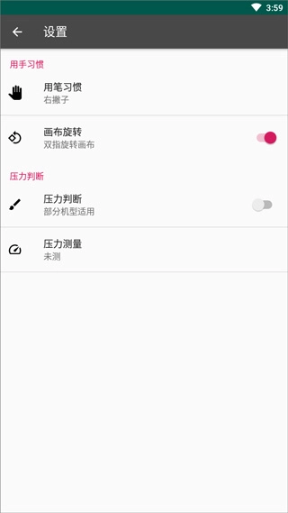 5、此外,你也能够进入设置栏,对自己的用笔习惯进行调整。