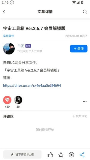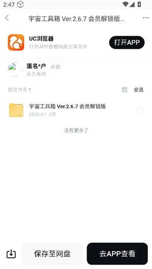 4、当你进入“宇宙工具箱”的详情页面时,能够发现该软件是借助网盘进行分享的。