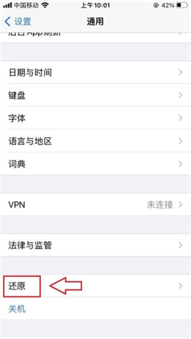3、轻点“还原”选项。