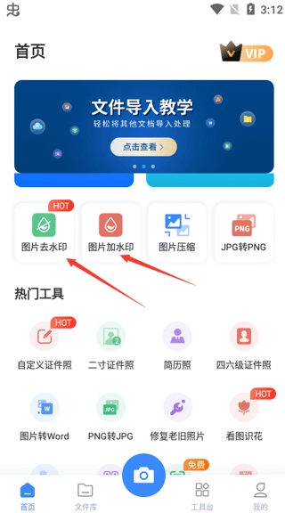 2、首页具备图片去水印、图片加水印、图片压缩、jpg转png、图片转word、图片转pdf等功能。