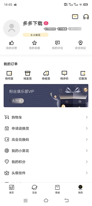 时代峰峻fanclub正版,这是北京时代峰峻文化艺术发展有限公司推出的,专为TFboys粉丝打造的福利回馈软件,叫“tf家族fanclub” 。此软件即TF家族粉丝俱乐部,涵盖商城、会员动态、福利、粉丝等多个板块,目的是让用户及时知晓偶像动态,带来全新追星体验。