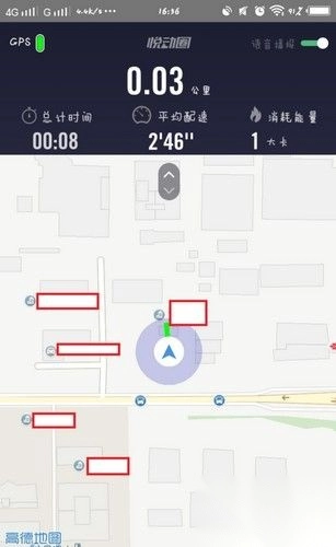 3、绿色图标所展示的便是你所处的位置(我在公园跑步的时候,GPS信号稍差)。