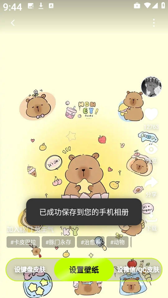 3、任意选择一张喜欢的壁纸图片,直接点击“”即可。